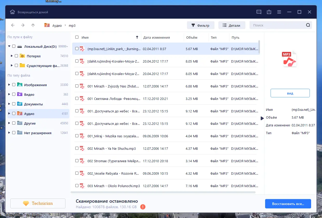 - Возможность предварительного просмотра файлов перед восстановлением.