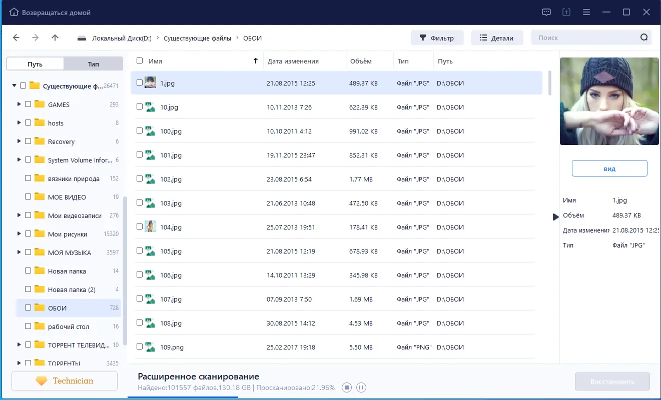 - Возможность предварительного просмотра файлов перед восстановлением.