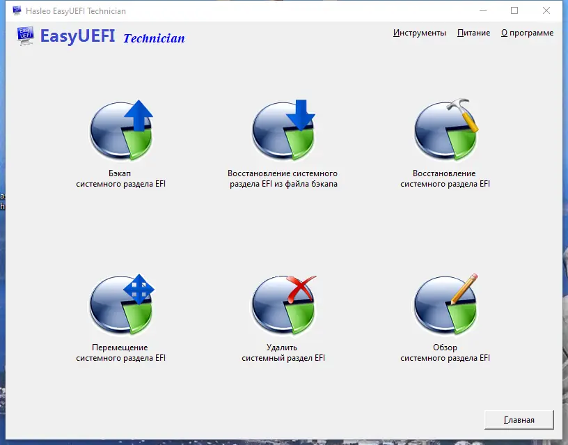- Функции резервного копирования и восстановления загрузочного раздела EFI.