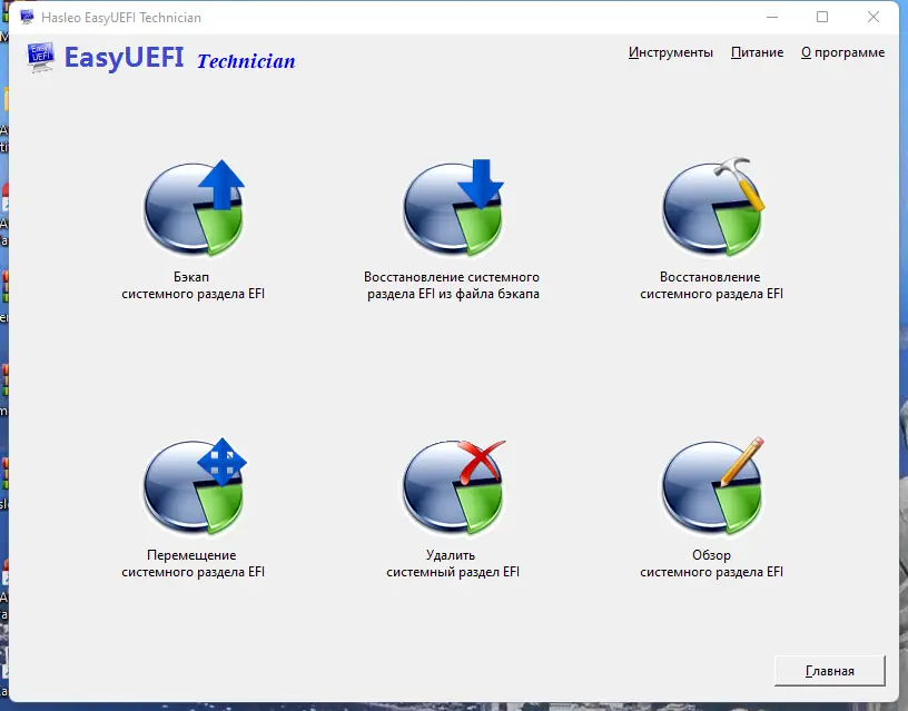 - Возможность создания резервных копий загрузочного меню и системного раздела EFI.