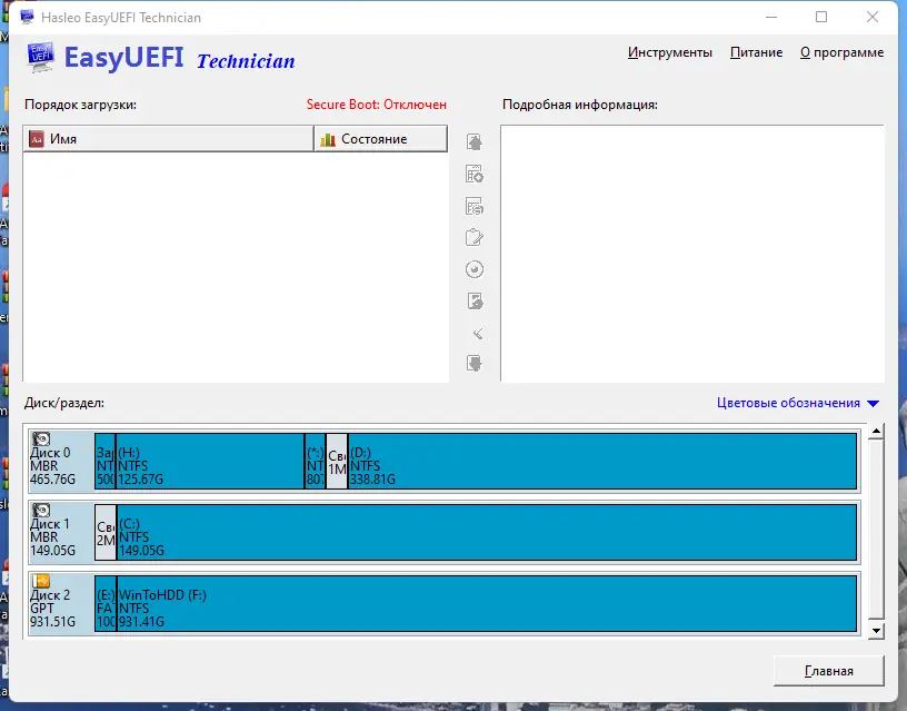 - Программа работает только на оборудовании с поддержкой EFI/UEFI.