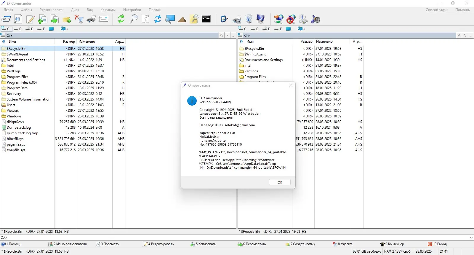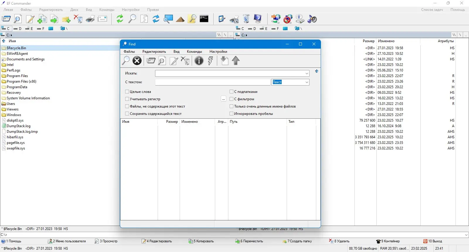 EF Commander — это насыщенный функционалом двухпанельный файловый менеджер, который подойдет для эффективного управления файлами и папками различных типов и форматов. Прост в использовании, требует минимум системных ресурсов и выполнен в стиле, схожем с Total Commander, но с уникальными возможностями и интерфейсом. Программа может работать как на классической 32-битной системе, так и в 64-битных средах, обеспечивая высокую производительность и удобство в работе.