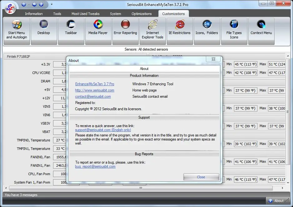 EnhanceMySe7en представляет собой продвинутый твикер, объединяющий десятки инструментов для эффективного управления системой Windows 7. В состав входят дефрагментатор жесткого диска и реестра, мониторинг состояния винчестера, менеджер автозагрузки, диспетчер процессов и различные оптимизаторы. Программа позволяет не только автоматизировать настройку системы, но и вручную править параметры компонентов, рабочих столов, политик безопасности, а также управлять возможностями браузера Internet Explorer и другими аспектами операционной системы.