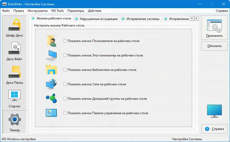 - Настройка системы с расширенными параметрами безопасности, производительности и пользовательскими опциями, не включёнными в стандартные компоненты Windows.