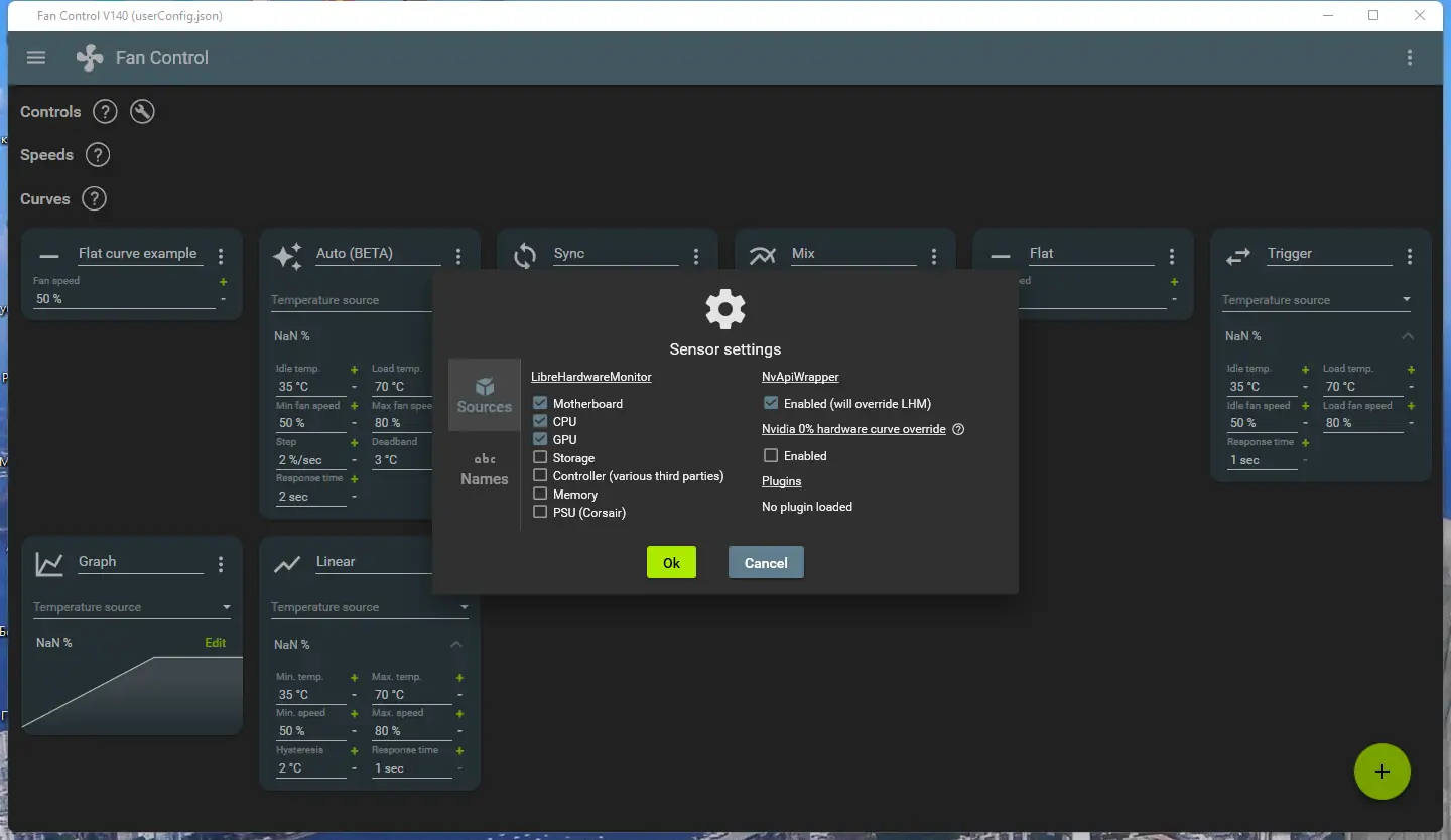 - Настройте датчики и кривые вентиляторов по мере необходимости.