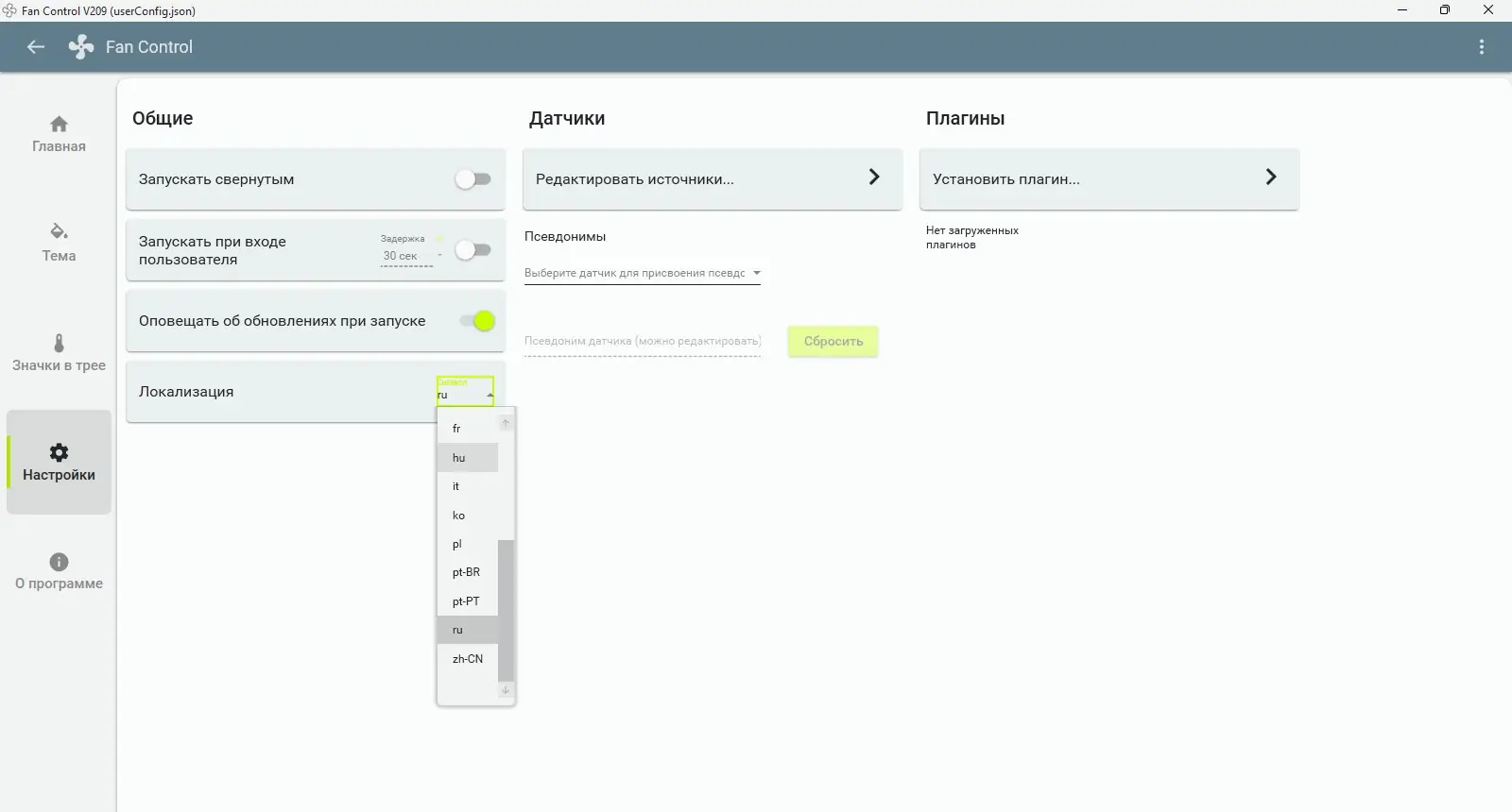 - Поддержка датчиков CPU, GPU, материнской платы и HDD