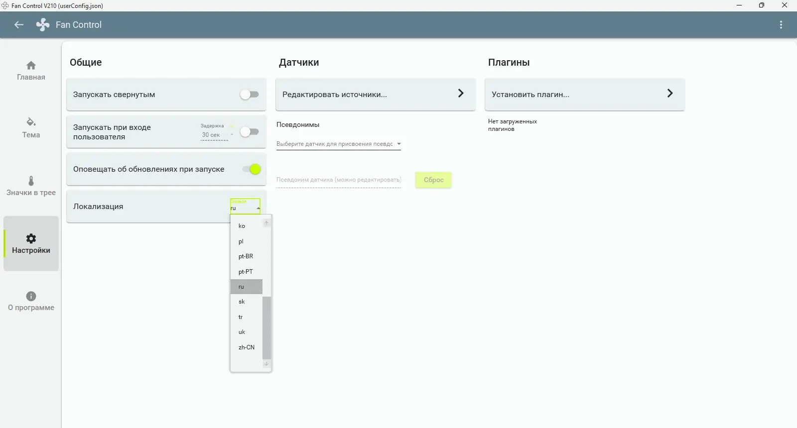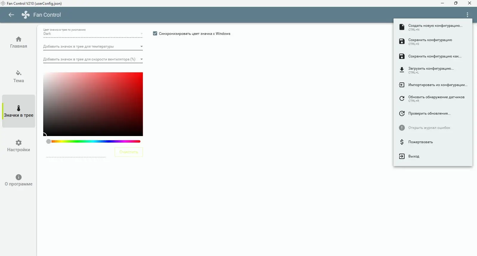 - Создание, редактирование и сохранение профилей работы вентиляторов
