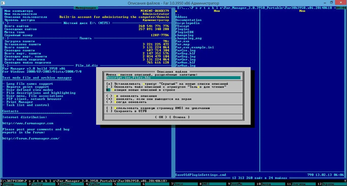 Для комфортной работы с Far Manager рекомендуется иметь следующую конфигурацию системы:
