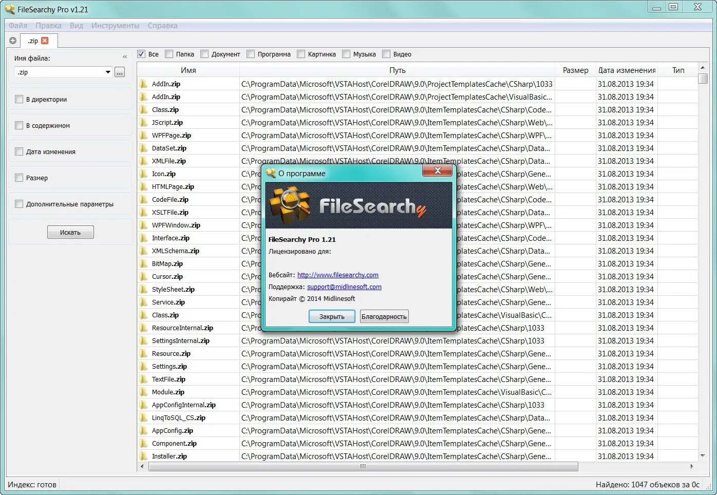 Программа зарекомендовала себя как эффективный инструмент для поиска файлов и информации на компьютере, предлагая высокий уровень производительности и множество опций.