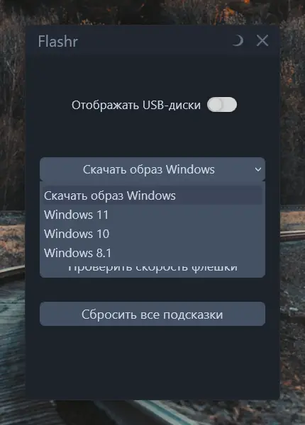 Flashr — это компактная, но весьма функциональная программа для записи образов Windows на флеш-носители, которая отличается простотой использования и минималистичным интерфейсом. Обеспечивает загрузку оригинальных образов Windows и их правильную запись без необходимости технических знаний.