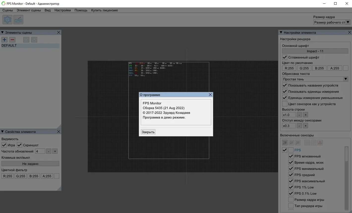 FPS Monitor — это универсальный инструмент для отслеживания состояния компонентов вашего компьютера в реальном времени, который отображает необходимую информацию прямо поверх игровой сцены. Благодаря встроенному игровому оверлею вам больше не нужно переключаться между окнами или подключать дополнительные мониторы для контроля системных параметров. В активной версии программы отсутствует нижний баннер и изменение шрифта датчиков, что обеспечивает более удобный и непрерывный мониторинг.
