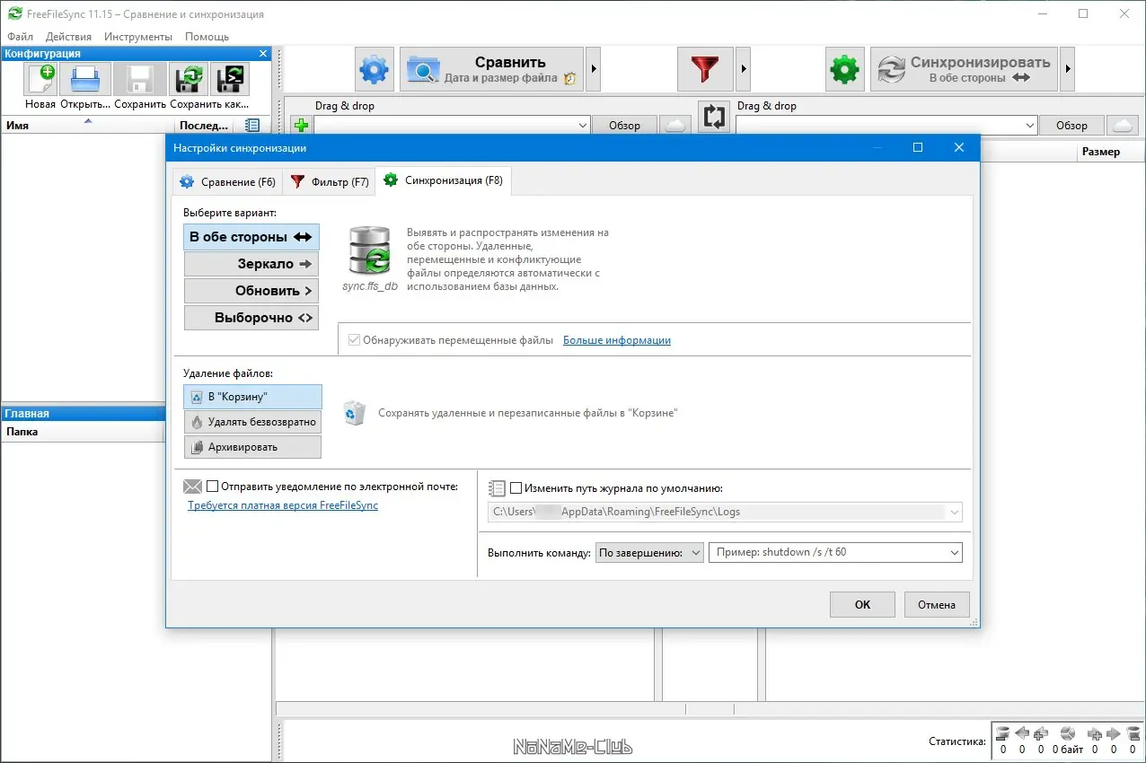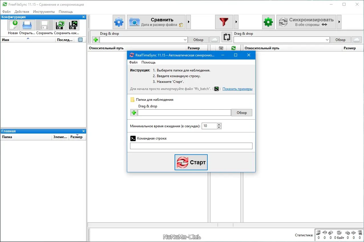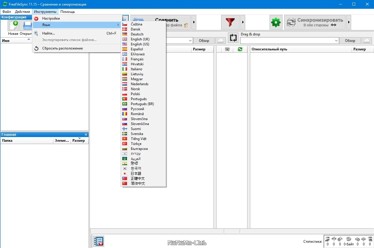 - После завершения установки или распаковки портативной версии запустите FreeFileSync и настройте параметры синхронизации.