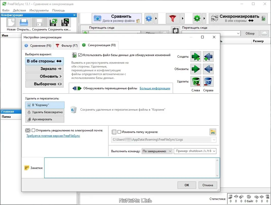 FreeFileSync — это универсальная программа, разработанная для сравнения и синхронизации файлов в указанных каталогах. Реализована проверка по содержимому (побайтовое сравнение), а не только по размеру или дате. Удобный графический интерфейс позволяет легко настраивать процессы синхронизации, а фильтры дают возможность исключать или включать файлы в с помощью различных критериев. Поддерживаются методы автоматической синхронизации, зеркального отображения, режима обновления и ручной настройки. Также предусмотрена возможность синхронизации по расписанию, что делает работу еще более гибкой. Программа работает с файлами, размер которых превышает 4 GB, поддерживает Unicode и сеть, а также каждую операционную систему с поддержкой NTFS и символических ссылок, включая Linux и Windows.