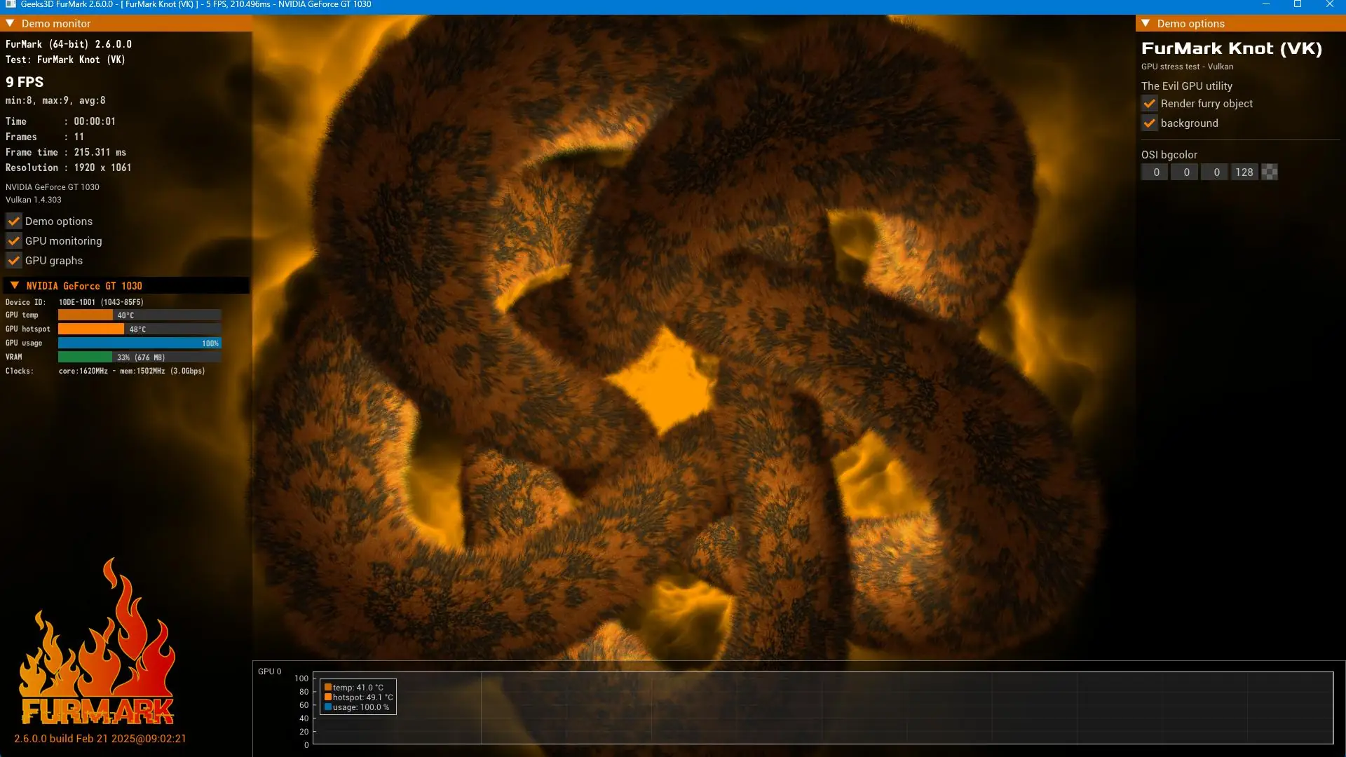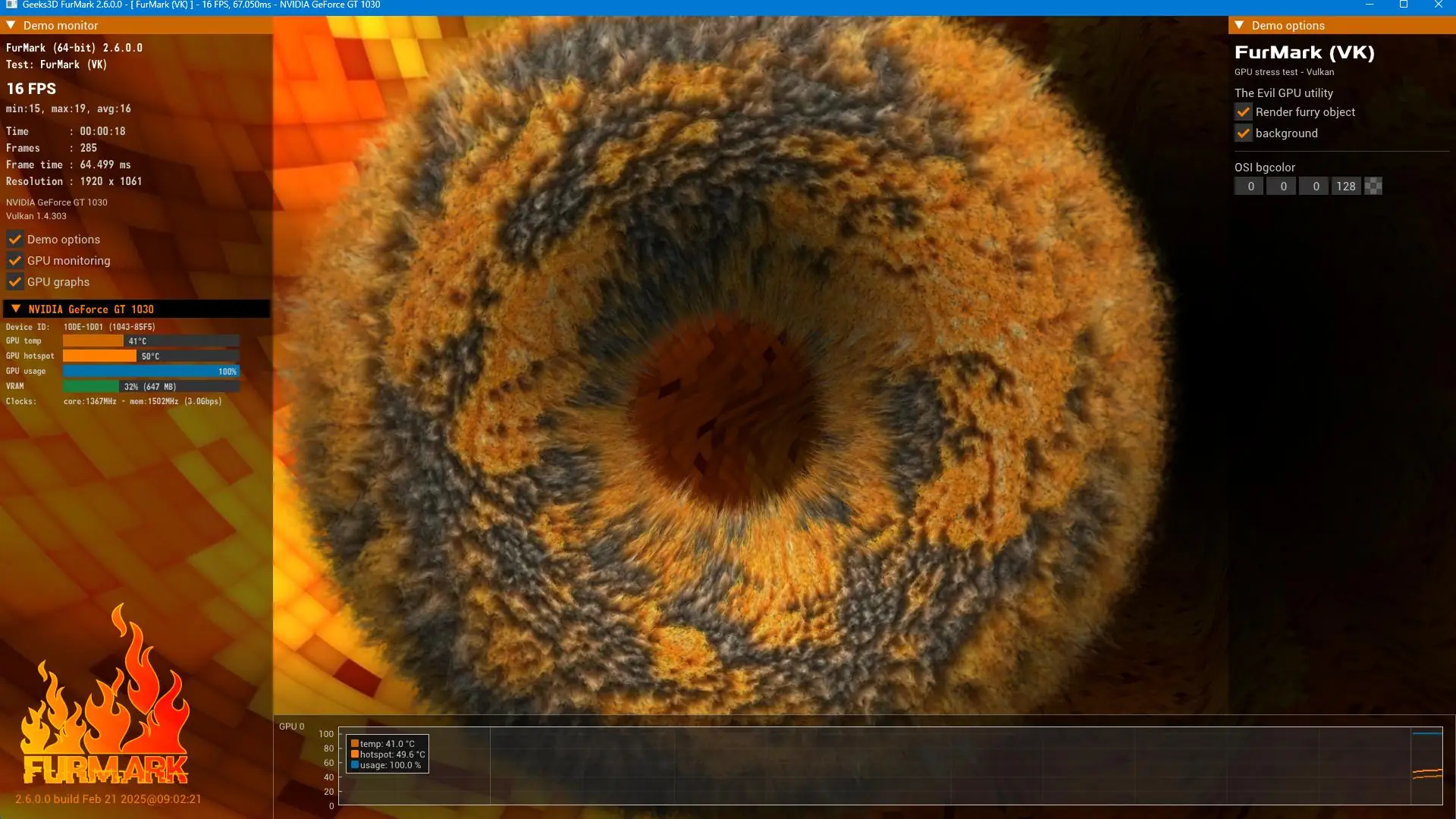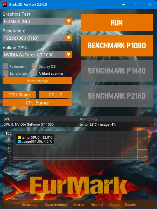 FurMark — это мощный и чрезвычайно интенсивный стресс-тест графического процессора, созданный для оценки стабильности видеокарт и системы охлаждения. Обладая быстрым OpenGL и Vulkan графическим тестом, он позволяет профессионалам и энтузиастам выявлять слабые места и проверять надежность оборудования. Разработанный с использованием GeeXLab и расширенными возможностями командной строки, данный инструмент подходит для проведения длительных и точных тестов, а также для оценки эффективности разгона.