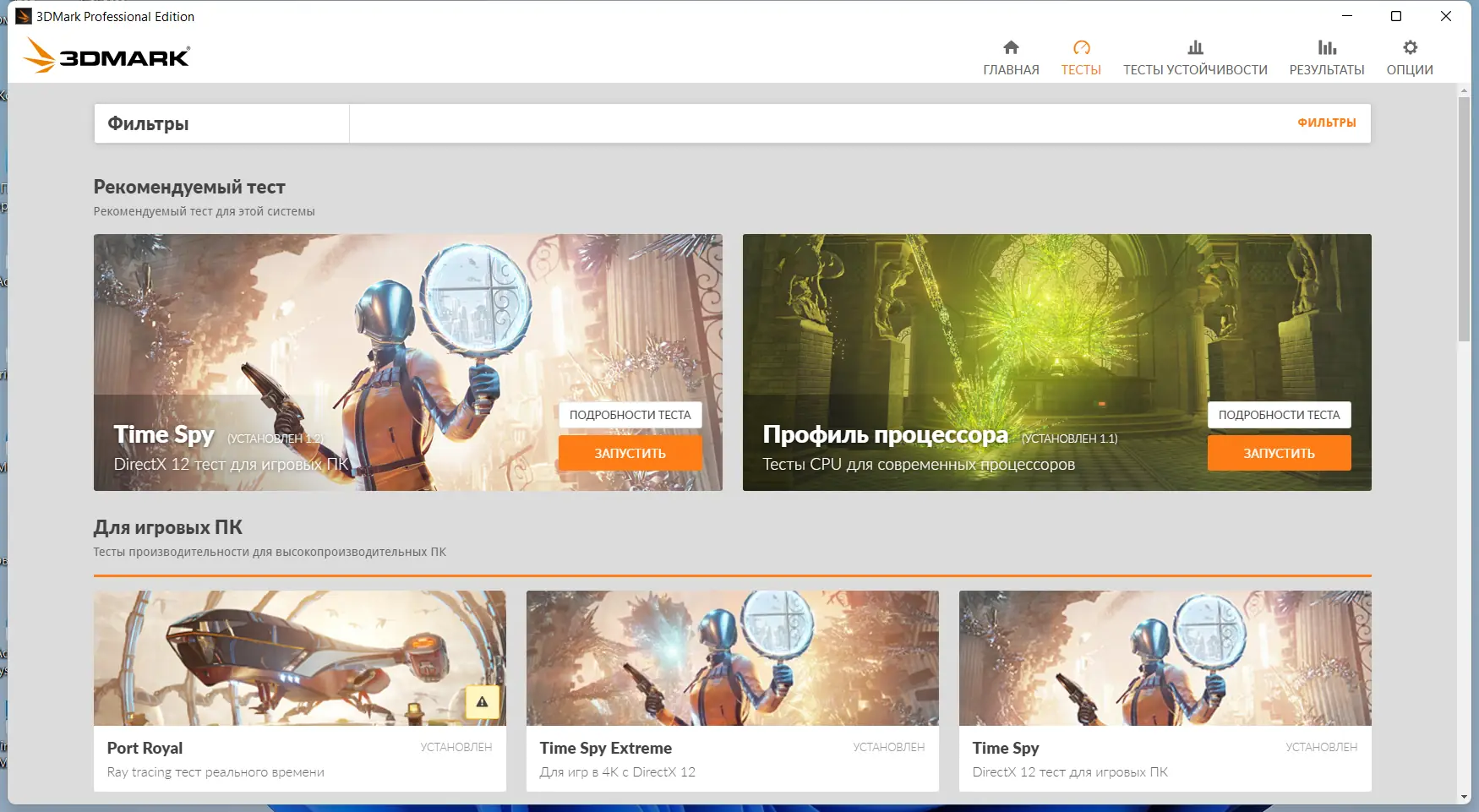Futuremark 3DMark — мощный инструмент для оценки производительности вашего оборудования для игр и графических задач. Он подходит для тестирования ПК, ноутбуков и планшетов, предоставляя точные и подробные результаты, основанные на различных сценариях и разрешениях, таких как 2K, 4K, а также экстремальные 5 и 8K. Программа содержит множество предварительно настроенных тестов, позволяя подобрать оптимальный вариант для любой конфигурации и уровня компетентности пользователя.