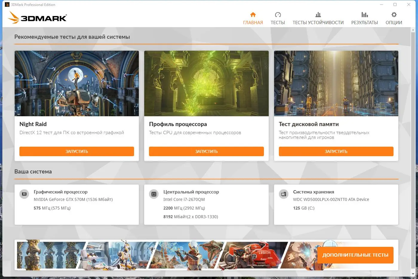 Дополнительно | Поддержка работы в 4K и выше, актуальные драйверы видеокарт, наличие SSD рекомендуется для тестирования экстремальных режимов |