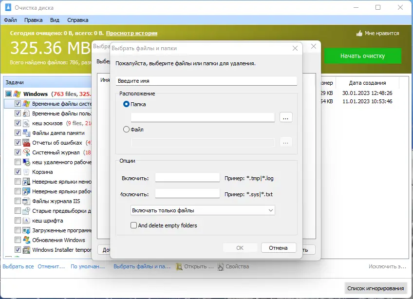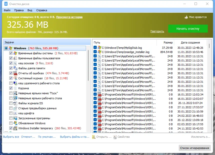 - Удаление файлов дампа памяти и отчетов об ошибках