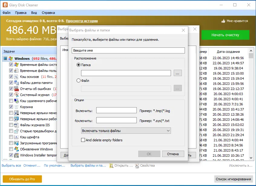 - Очистка файлов дампа памяти и отчетов об ошибках