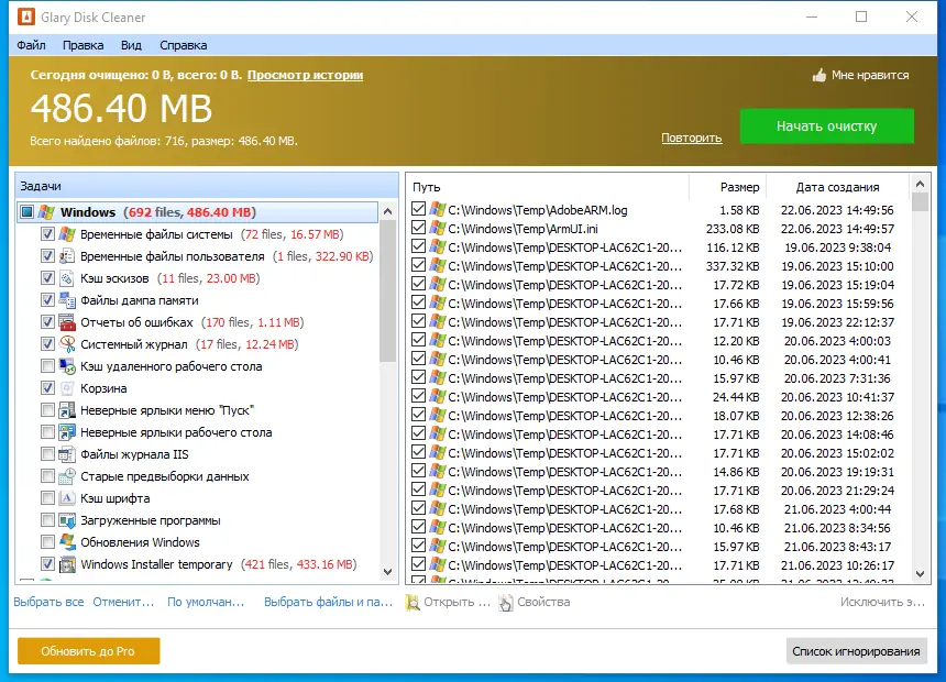 Этот мощный утилит от компании Glarysoft предназначен для автоматической и безопасной очистки различных типов временных и ненужных файлов. С помощью Glary Disk Cleaner можно значительно освободить пространство на диске, удаляя временные файлы системы, кэш приложений, файлы дампа памяти, отчеты об ошибках и другую временную информацию. Поддержка современных версий Windows – 7, 8/8.1, 10 и 11 – делает его универсальным решением для пользователей с разными конфигурациями, как на 32-, так и на 64-битных системах.