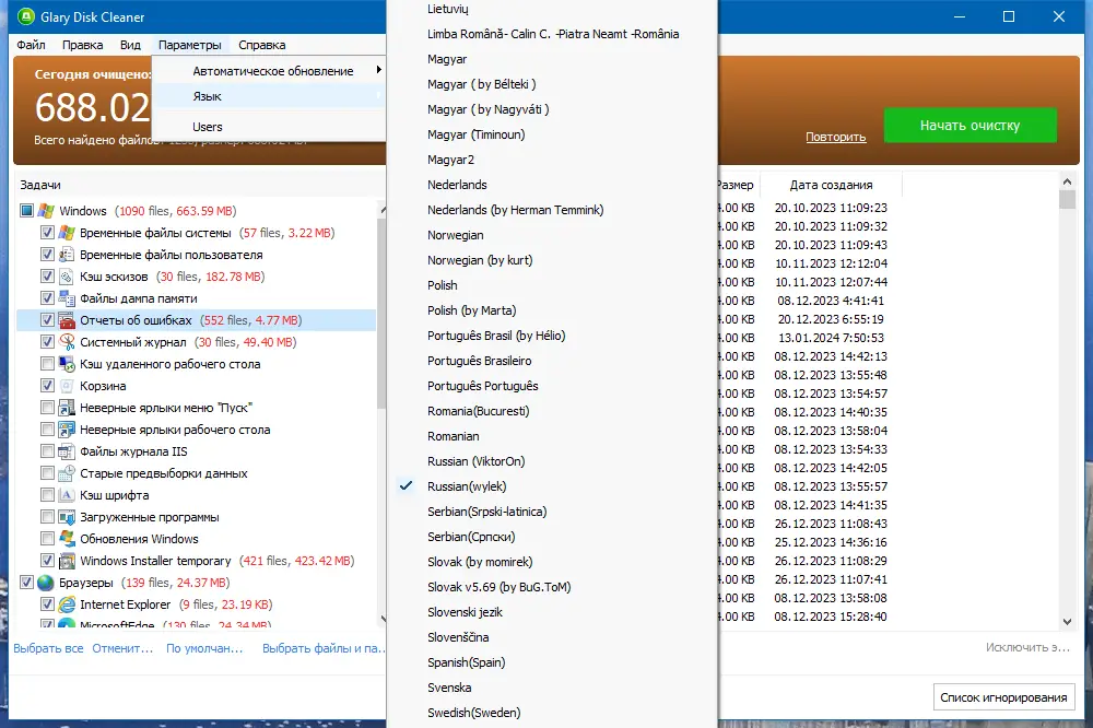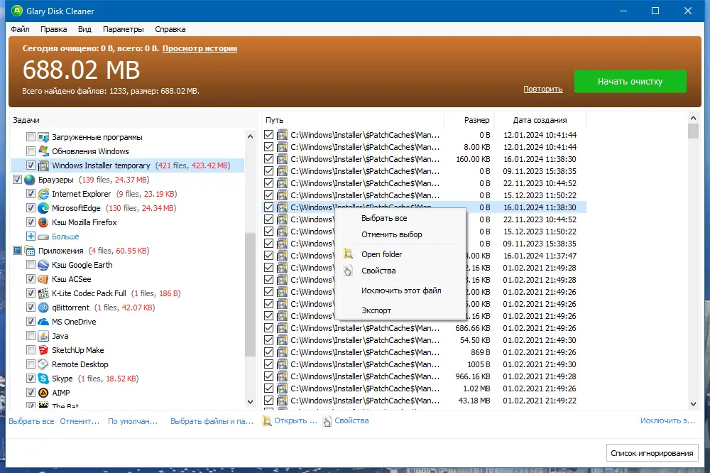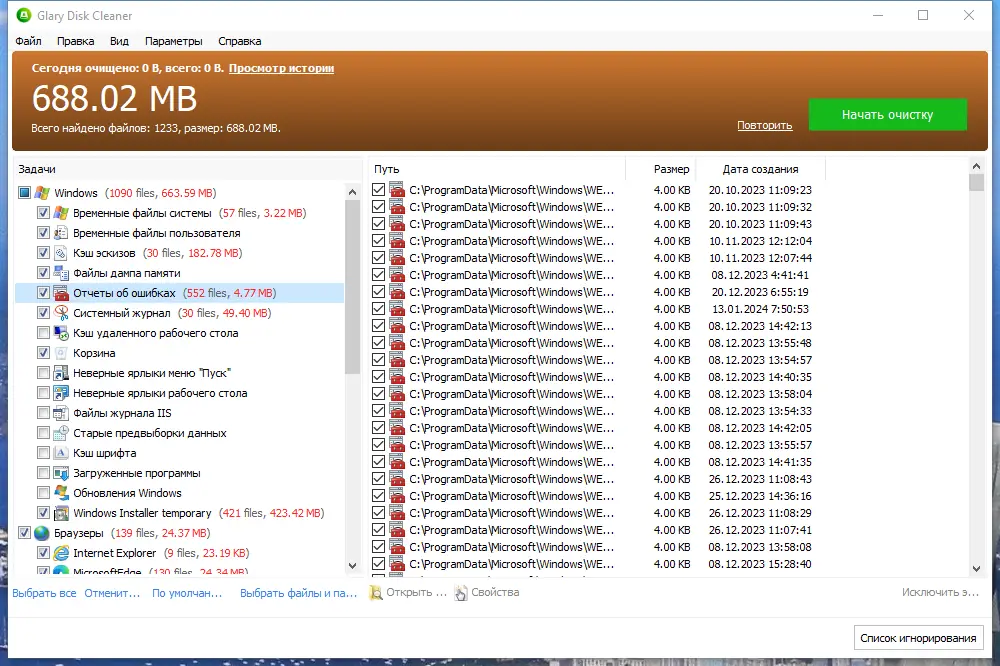 Данная программа предназначена для быстрой и эффективной очистки операционной системы от временных файлов, кэша различных приложений и интернет-браузеров, файлов дампа памяти, корзины и других ненужных данных. Используя Glary Disk Cleaner, пользователи могут добиться повышения производительности системы и освобождения пространства без сложных настроек и затрат времени.