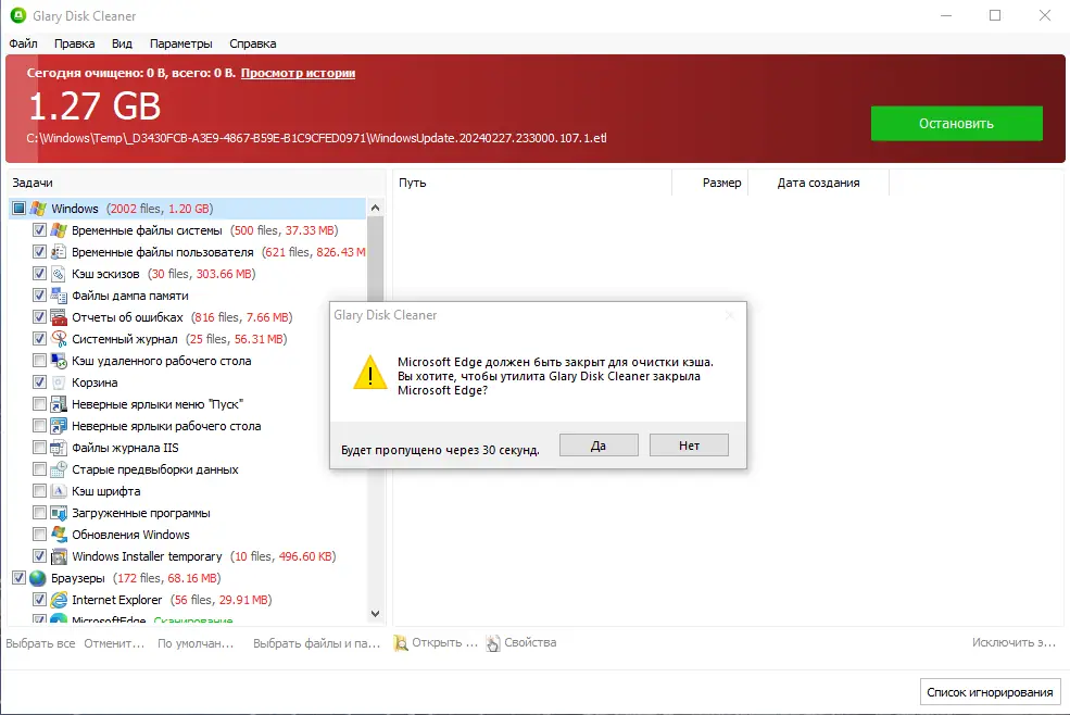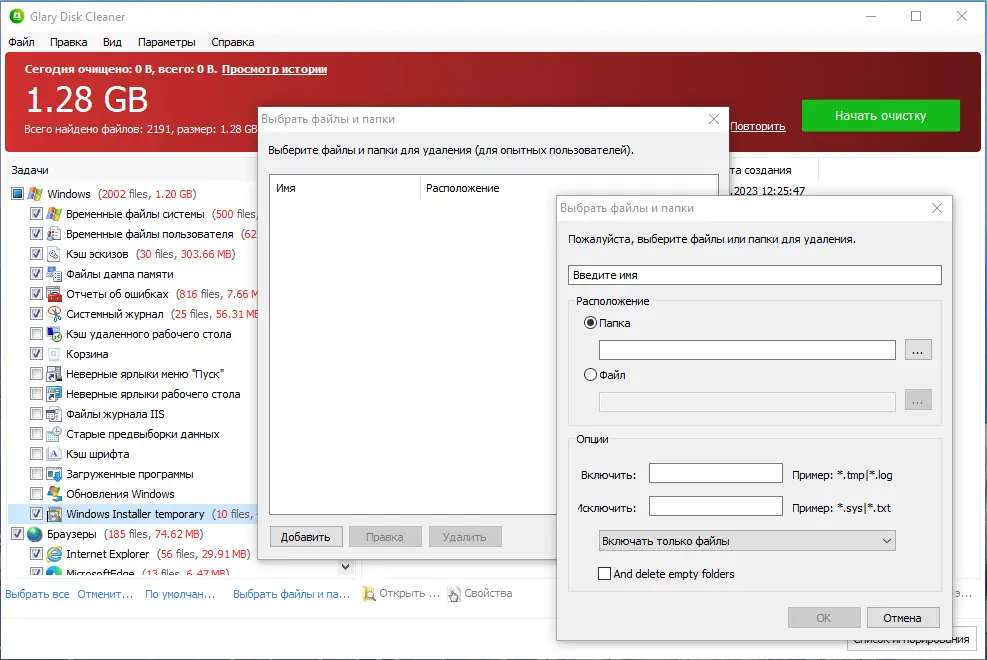 - Очистка файлов дампа памяти и отчетов об ошибках