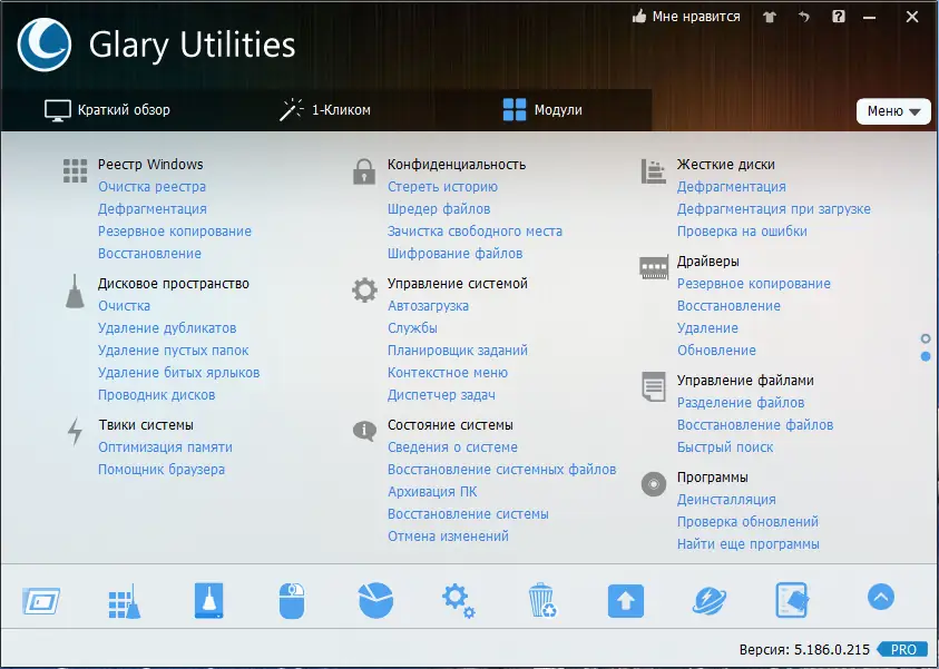 Glary Utilities – это мощный набор системных утилит и твикеров, предназначенных для тонкой настройки, повышения производительности и защиты ПК. Программа помогает избавиться от ненужных файлов, исправить ошибки реестра и обеспечить безопасность системы в процессе работы.