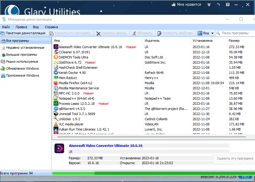 Glary Utilities — это мощный функциональный набор системных твикеров и утилит, предназначенных для оптимизации, настройки и защиты компьютера. Приложение позволяет избавляться от ненужных файлов, очистить реестр от устаревших записей, удалить истории интернет-активности, а также управлять автозагрузкой и системными процессами. Благодаря широкому спектру плагинов и высокой совместимости с более чем 45 программами, оно обеспечивает полностью настраиваемую работу системы и безопасность данных.