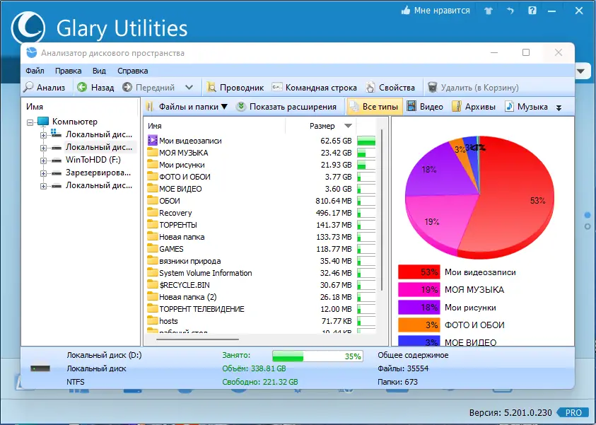 - Управление ярлыками, мониторинг процессов и анализ дискового пространства