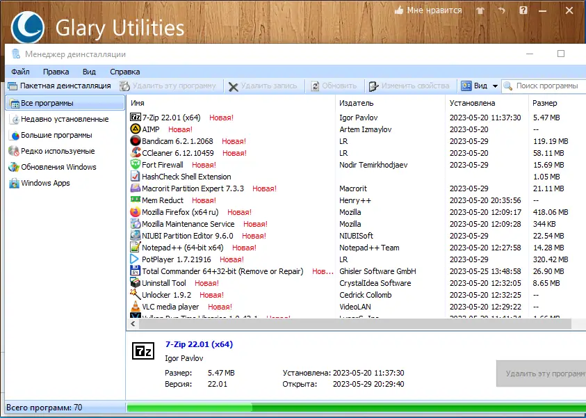 Это функциональный комплекс системных твикеров и утилит, предназначенных для повышения общего уровня производительности и защиты ПК. Приложение позволяет избавиться от ненужных файлов, устаревших записей в реестре и истории интернет-активности, а также оптимизировать использование системной памяти. Благодаря поддержке более 45 программных продуктов, Glary Utilities обеспечивает полную совместимость и гибкость в работе. В режиме реального времени она осуществляет поиск и исправление ошибок, управляет автозагрузкой, удаляет следы работы пользователя и шифрует файлы для защиты информации.