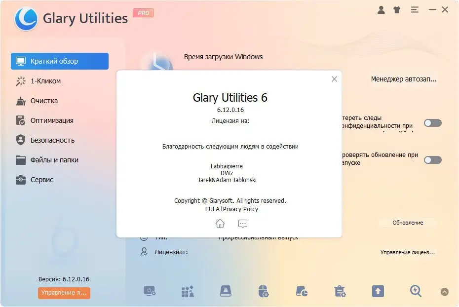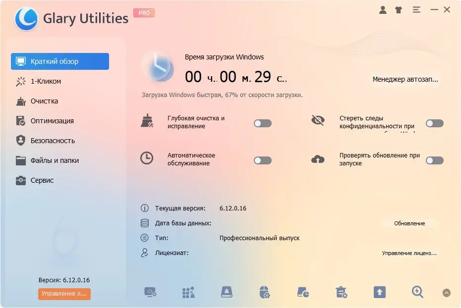 Glary Utilities — это мощный и функциональный набор системных утилит, предназначенных для тонкой настройки и повышения производительности компьютера. Благодаря многочисленным встроенным инструментам, программа позволяет оптимизировать работу системы, защищать файлы и исправлять ошибки, обеспечивая стабильную работу ПК.