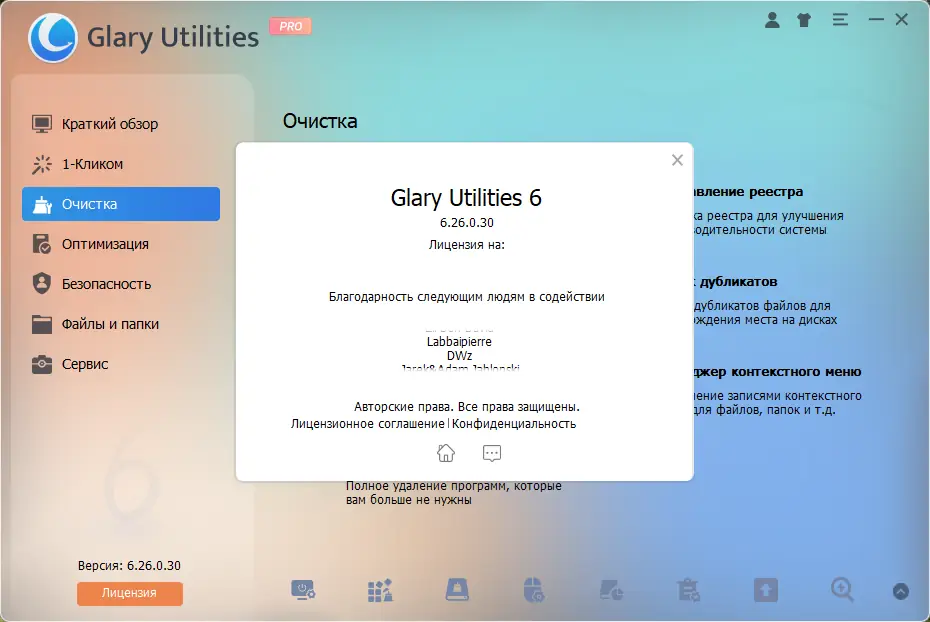 Glary Utilities — это мощный и многофункциональный набор системных утилит, предназначенных для тонкой настройки и оптимизации работы компьютера. Приложение помогает повысить производительность системы, устранить ошибки, освободить место на диске и обезопасить ПК от вредоносных программ. Благодаря простому интерфейсу и поддержке более 45 различных программных продуктов, оно идеально подходит как для новичков, так и для опытных пользователей, желающих обеспечить стабильную работу своего компьютера.