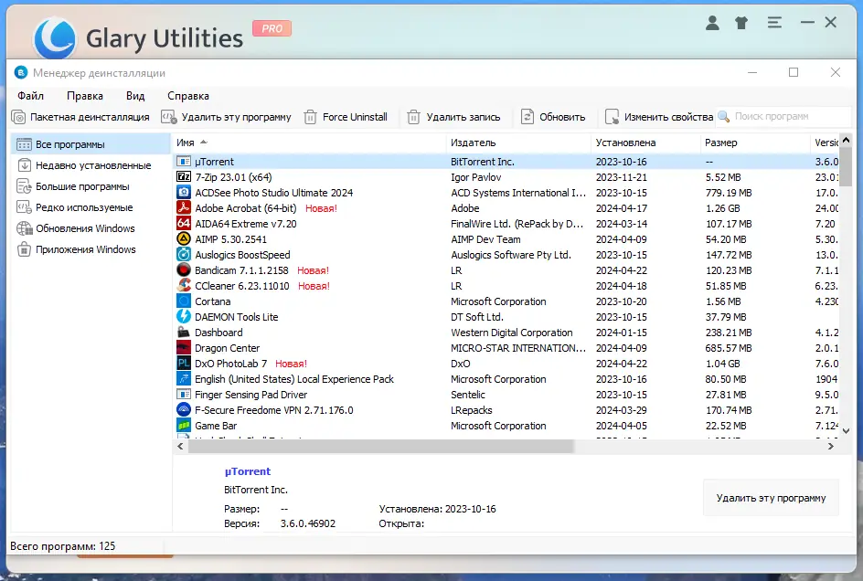 Glary Utilities — это функциональный системный твикер, который позволяет избавиться от ненужных файлов, очистить реестр и устранить следы интернет-активности. Благодаря широкому набору плагинов, приложение совместимо с более чем 45 популярными программами и системами Windows 7, 8/8.1, 10 и 11 на платформах x32 и x64 Bit. Встроенные инструменты помогают оптимизировать использование оперативной памяти, управлять автозагрузкой, исправлять ошибки и удалять ненужные приложения. Удобный интерфейс и возможность локализации на русский язык делают программу доступной для пользователей любого уровня.
