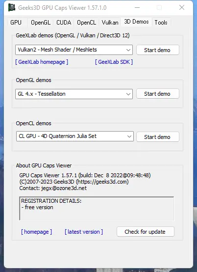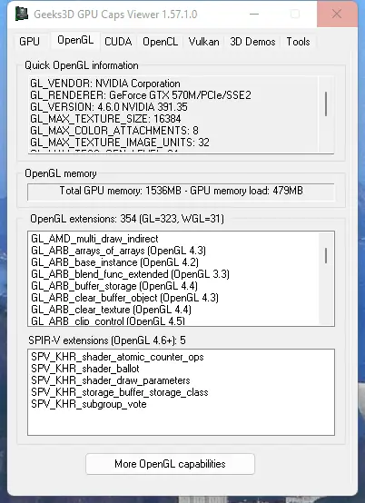 GPU Caps Viewer — это бесплатная информационная утилита, которая позволяет получать детальную информацию о видеокартах, проводить тестирование OpenGL и OpenCL, а также вести мониторинг параметров GPU в реальном времени.