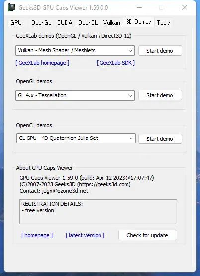 GPU Caps Viewer — это удобная и функциональная утилита для получения информации о графической карте, а также для проведения OpenGL и OpenCL тестов и мониторинга параметров GPU в реальном времени. Программа подходит как для опытных пользователей, так и для тех, кто хочет быстро ознакомиться с характеристиками видеокарты без глубоких знаний в области компьютерных технологий.