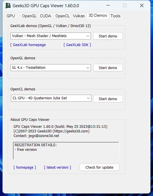 GPU Caps Viewer — это бесплатная информационная утилита, предназначенная для получения подробных данных о видеокартах. Она позволяет провести тесты OpenGL и OpenCL, а также вести мониторинг различных параметров GPU в реальном времени. Благодаря простому интерфейсу и отсутствию необходимости глубоких знаний, программа подходит как для профессиональных специалистов, так и для домашних пользователей, желающих получить максимум информации о своей видеокарте.
