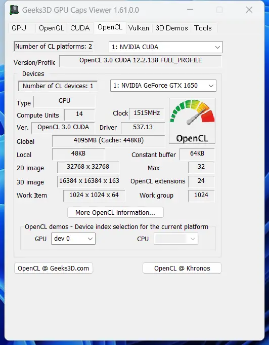 GPU Caps Viewer — это информационная утилита, предназначенная для получения подробной информации о видеокартах, а также для проведения тестов и мониторинга их параметров в реальном времени. Программа позволяет просматривать сведения о драйверах, поддерживаемых технологиях, уровнях OpenGL, OpenCL и CUDA. Благодаря удобному интерфейсу она подходит как для опытных пользователей, так и для тех, кто просто хочет проверить характеристики своей видеокарты без глубокой технической подготовки.