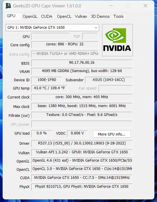 Эта утилита — один из самых универсальных инструментов для оценки и мониторинга графической системы. Она отлично подходит для диагностики, тестирования и получения конкретных данных о видеокартах различных производителей и моделей.