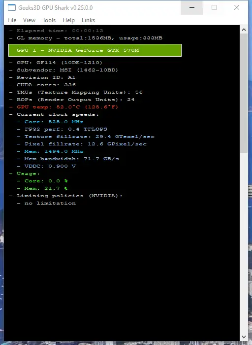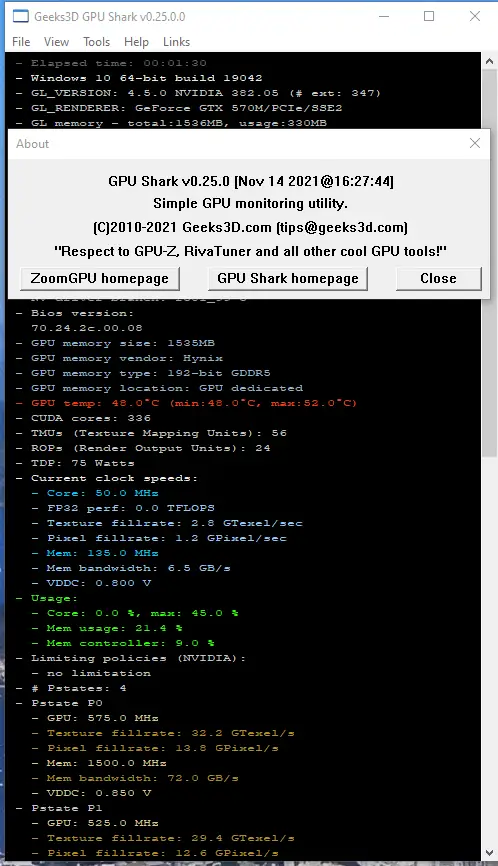 GPU Shark — бесплатная и простая утилита для мониторинга работы видеокарт на базе чипсетов NVIDIA GeForce и ATI Radeon. Предназначена для отображения ключевых параметров GPU, позволяя оперативно отслеживать состояние видеокарты и оптимизировать её работу.