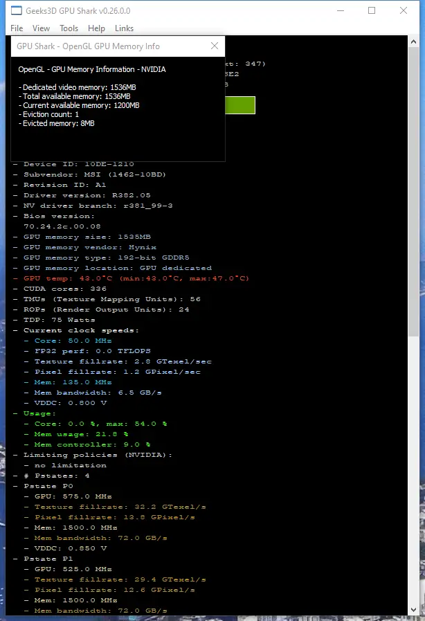 - Отображение тактовых частот GPU, памяти и шейдерных процессоров.