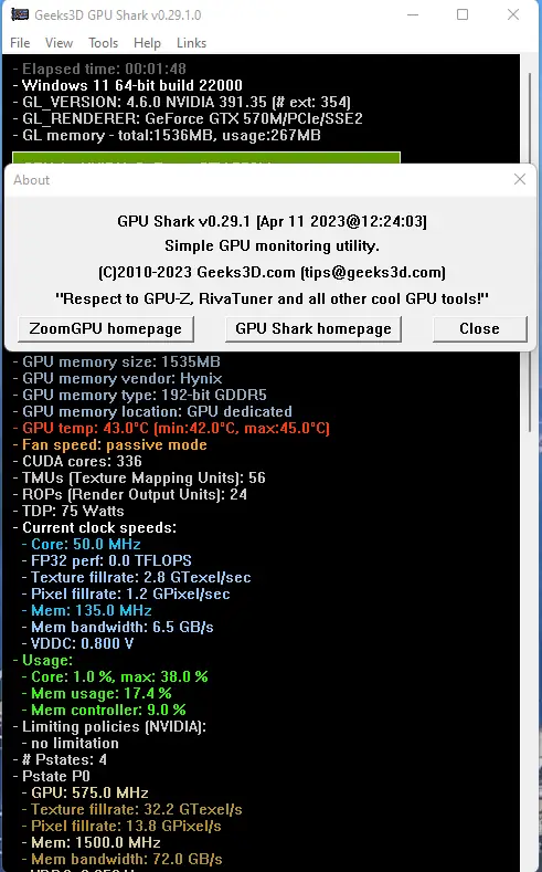 GPU Shark — небольшая, полностью бесплатная и очень простая в использовании утилита, предназначенная для мониторинга состояния видеокарт на базе чипсетов NVIDIA GeForce и ATI Radeon. Программа основана на ZoomGPU и позволяет в реальном времени отслеживать ключевые параметры работы GPU, обеспечивая пользователей важной информацией о состоянии их видеокарт. GPU Shark идеально подходит для тех, кто хочет контролировать производительность и избегать перегрева или других проблем во время интенсивных задач.