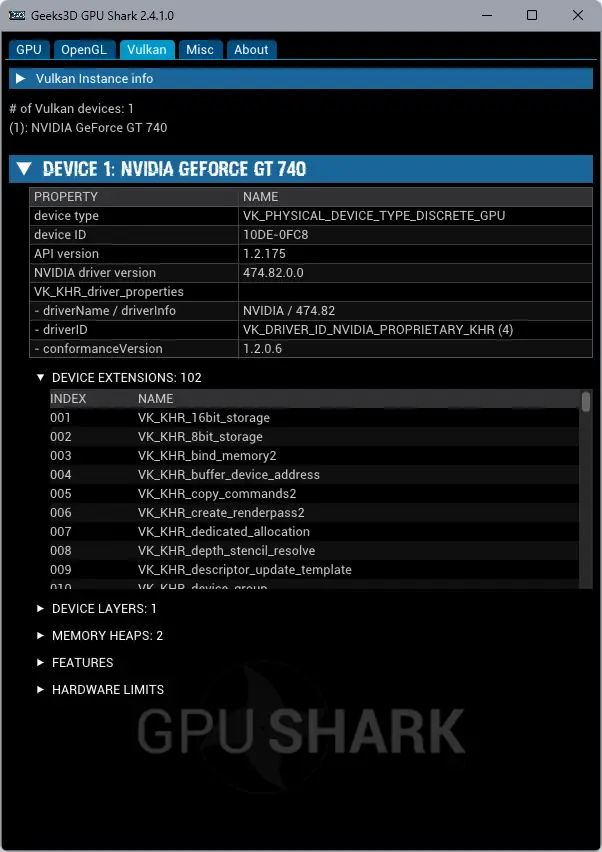 - Поддержка отображения информации о API OpenGL и Vulkan