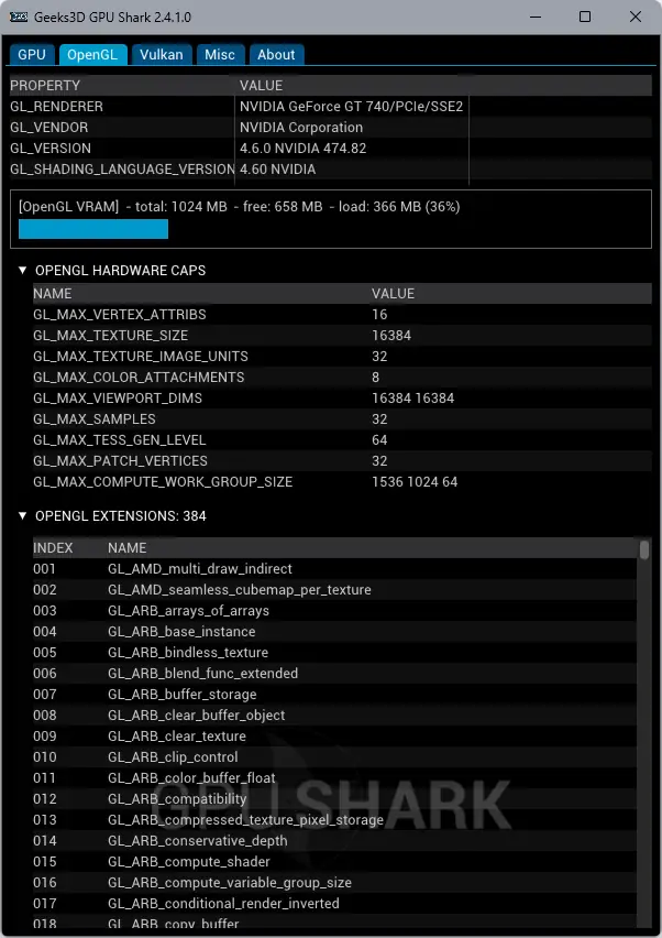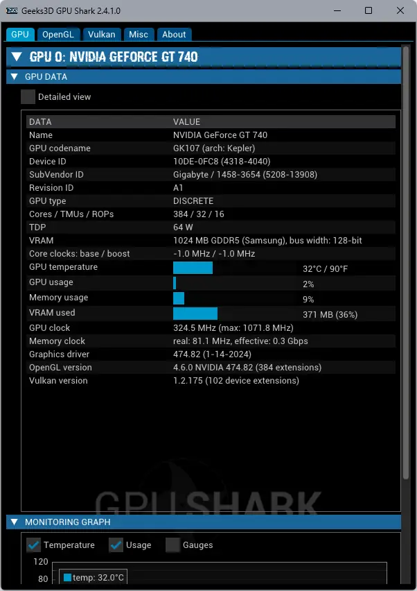 GPU Shark 2 является преемником первой версии и предназначен для профессионалов и энтузиастов, желающих контролировать состояние видеокарт на своих устройствах. Программа предоставляет актуальную информацию о температуре, использовании, тактовых частотах и мощности GPU, а также поддерживает API OpenGL и Vulkan, что делает её универсальным инструментом для мониторинга современных графических решений. Разработанная на движке GeeXLab, утилита обеспечивает совместимость с Windows 7, 8/8.1, 10 и 11 как в 32-битной, так и в 64-битной версиях.