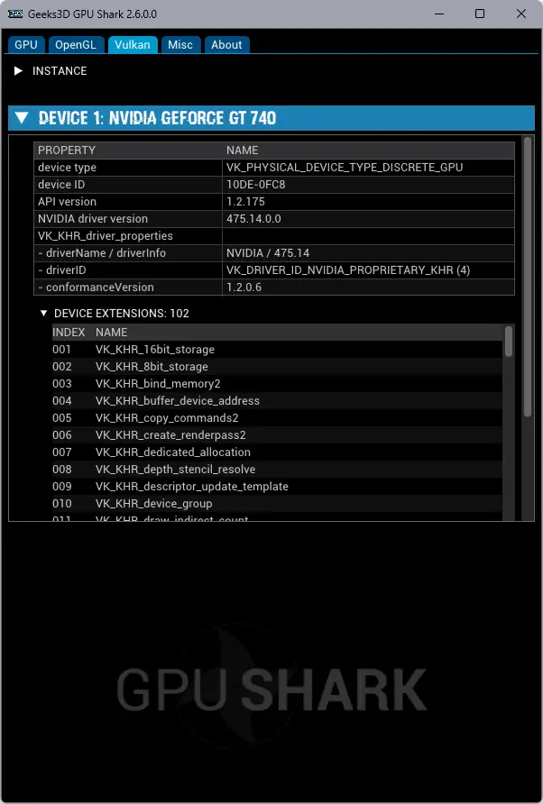 - Поддержка API OpenGL и Vulkan для получения расширенной информации