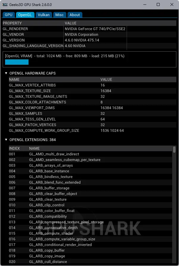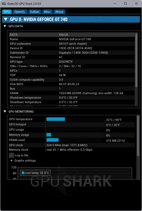 GPU Shark — это легкая и информативная утилита для мониторинга видеокарт, предназначенная для отслеживания основных аппаратных датчиков и получения технической информации о графическом процессе и VRAM.