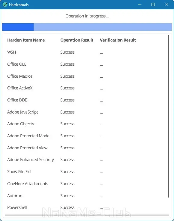 - Нажмите кнопку «Harden» для применения выбранных настроек.
