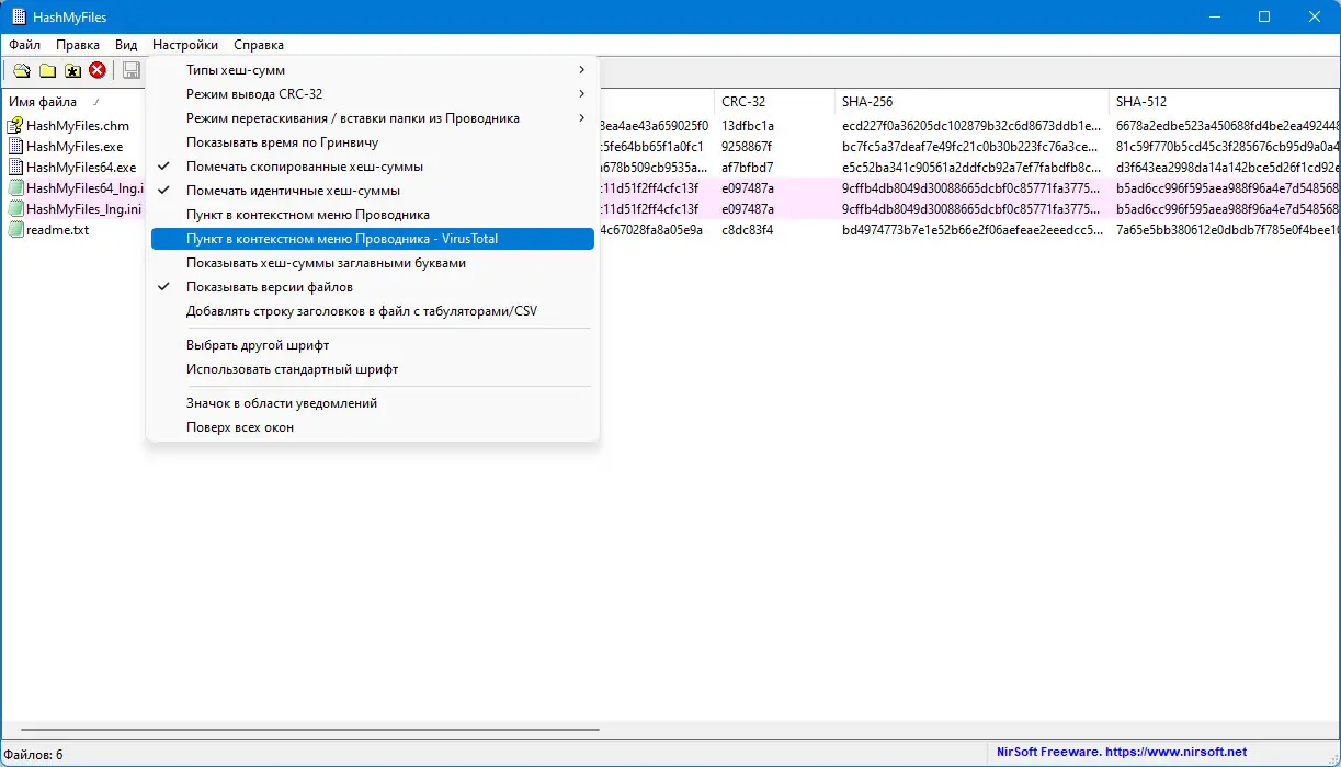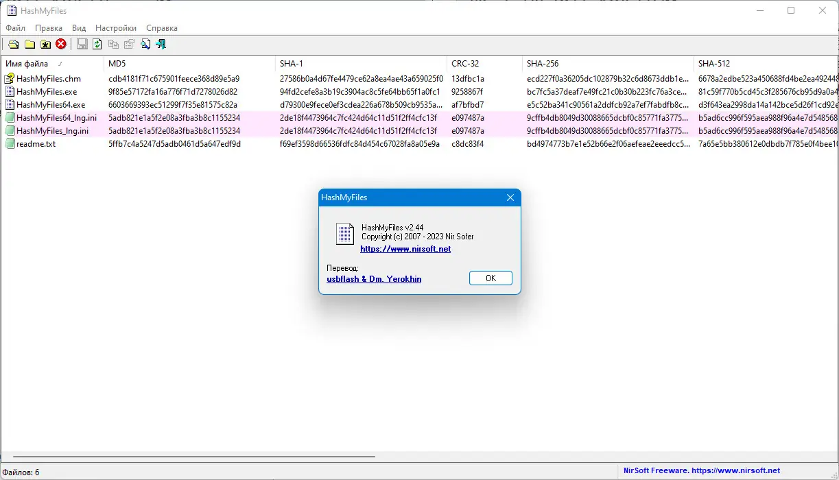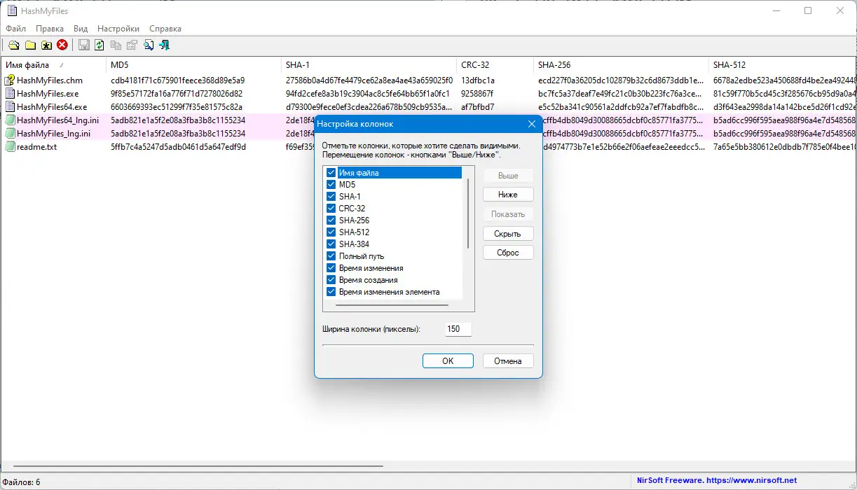HashMyFiles — это лёгкий и удобный инструмент, предназначенный для быстрого вычисления контрольных сумм как отдельного файла, так и целых групп. Он поддерживает популярные алгоритмы, такие как MD5, SHA1 и CRC32, что обеспечивает высокую точность сверки и уверенность в целостности данных. Утилита отлично подходит для пользователей, которым необходимо сверить контрольные суммы при скачивании файлов или проверке их подлинности. Она не требует установки, работает портативно и исключительно простая в использовании, что делает её подходящей как для новичков, так и для профессионалов.