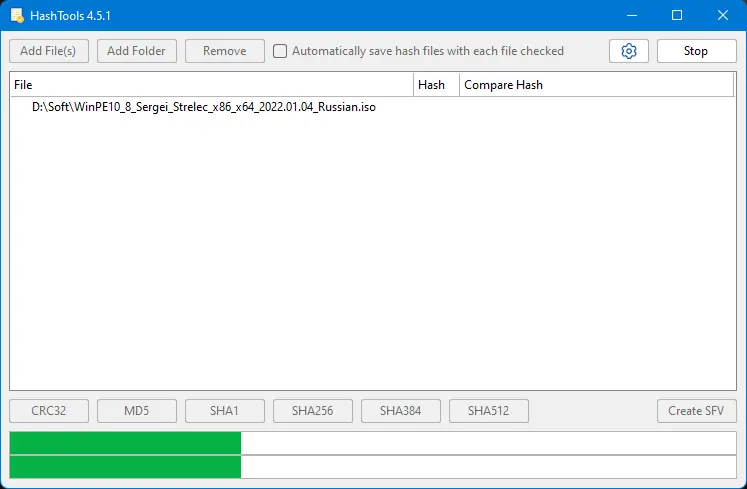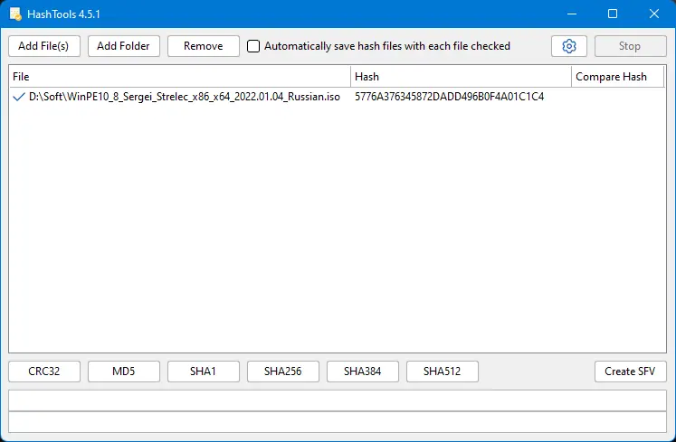 - Поддержка множества алгоритмов хеширования, включая CRC32, MD5, SHA1, SHA256, SHA384, SHA512 и SFV.