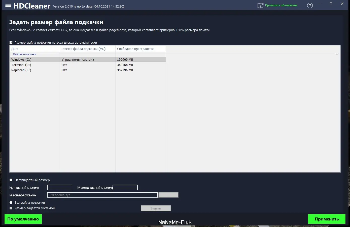 - Управление файлом подкачки и очистка временных данных браузеров.