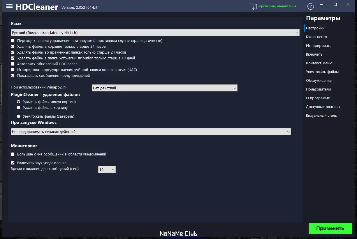 - Опции AntiSpy для отключения слежки и некоторых функций Windows.