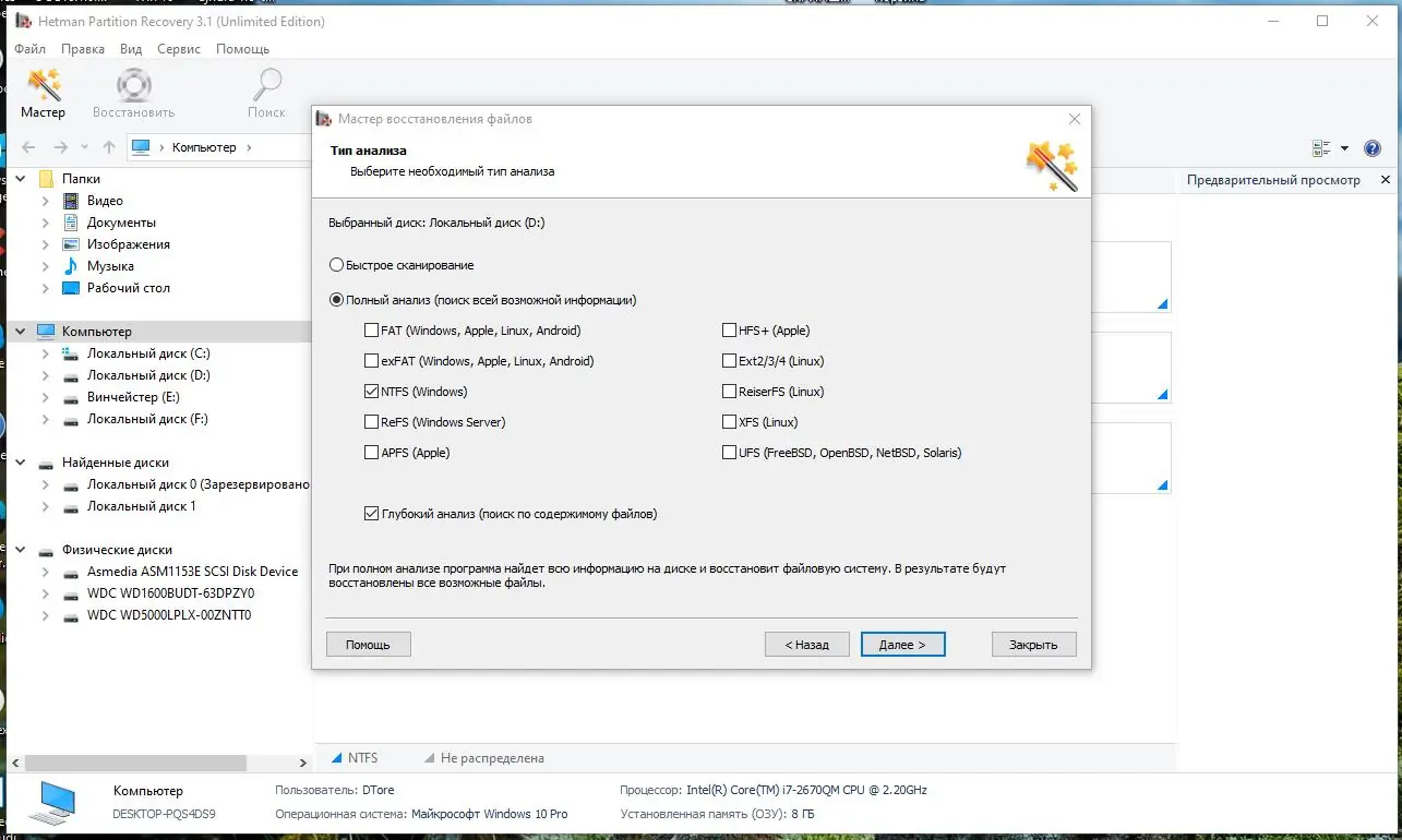 - Работа без записи на восстановительный диск, что исключает риск перезаписи данных.